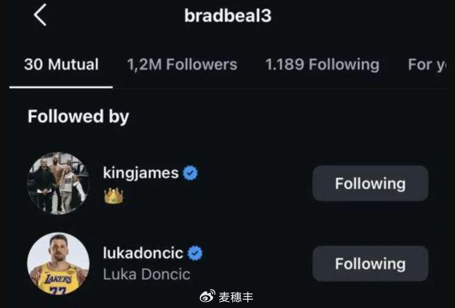 据报道,詹姆斯和东契奇已经在社媒账号上跟比尔互相关注了,这是一个积极的信号。湖人队可能接下来会进行最后一笔签约,签下比尔。